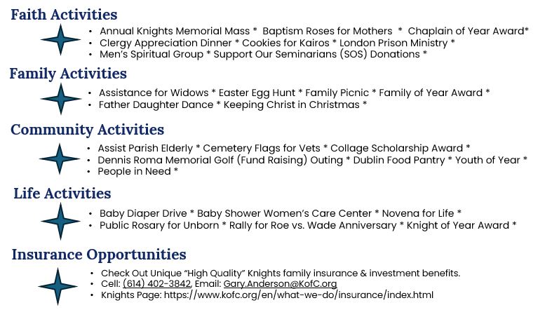 As Knights, we lead by example in unity, using our God-given talents to better our communities and those most in need.